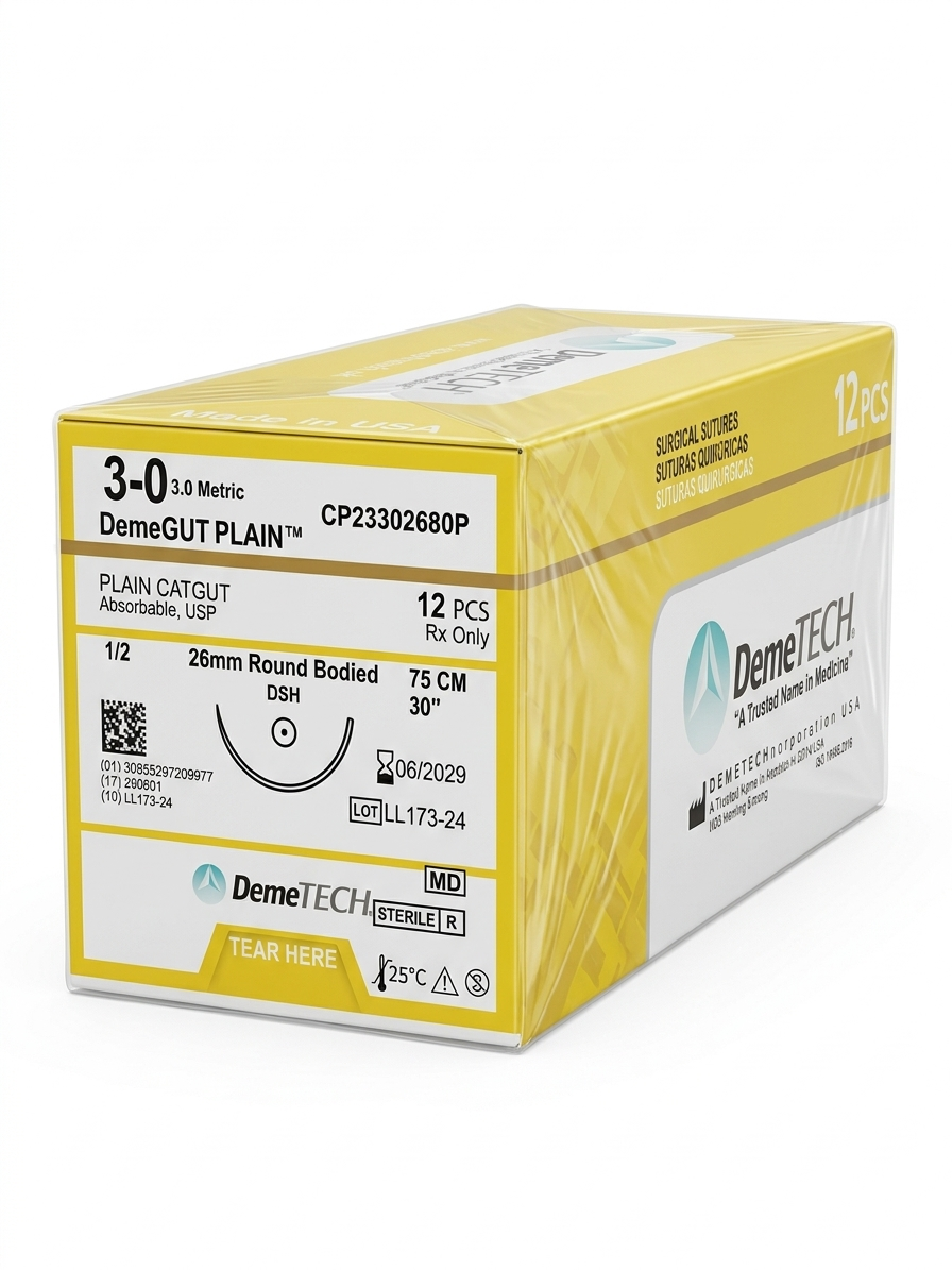 La sutura Plain Catgut DemeGUT 3-0 es una sutura absorbible de origen natural utilizada ampliamente en procedimientos quirúrgicos que requieren una absorción rápida y segura. Proporciona soporte adecuado durante la cicatrización inicial del tejido.